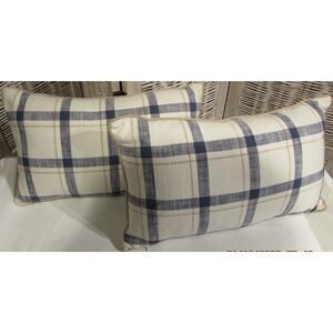 Threshold 0versized oblong pillows striped checkered blue cream throw decorative