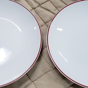 ***New in Box*** ***Reasonable offers will be Considered*** 4pk of salad plates Made with stoneware in a round shape Red-rimmed salad plates lend elegant appeal to your table setting Dishwasher-safe and microwave safe for reheating only