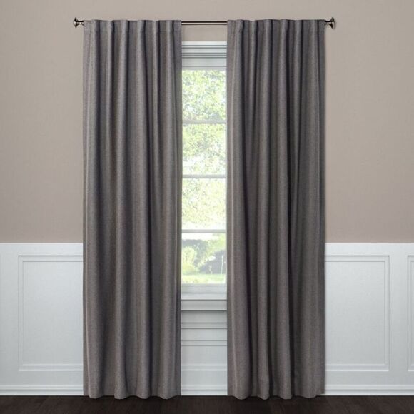 •Solid-colored curtain panel with a slightly textured fabric for a refined look