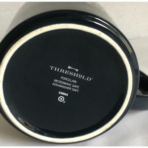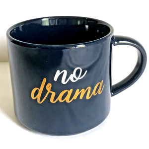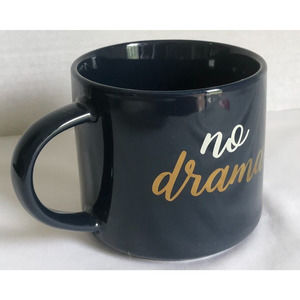 Threshold Dark Navy Blue No Drama Porcelain 12 oz. Coffee Tea Mug Cup Gold Spell Out. Message. Good used condition. No chips, no cracks. Little to no wear.