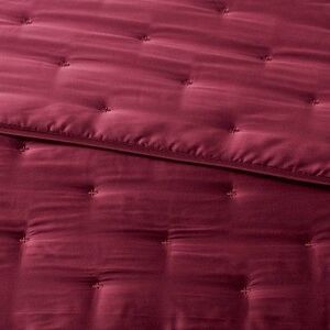 Elegant deep red comforter with matching pillow shams. Soft and stylish.