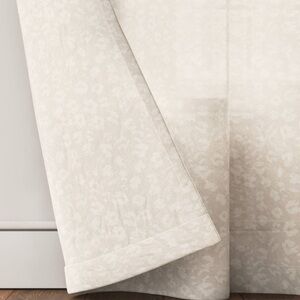 Threshold light filtering curtain in cream with subtle patterns. Perfect for adding elegance to any room.