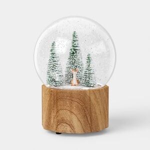 Threshold Flocked Tree Sitting Deer Musical Christmas Snow Globe