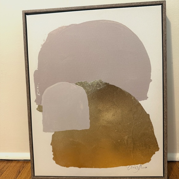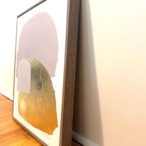 Stylish boho chic painting from Threshold (Target) featuring hand-painted details, gold foil accents, and a natural, organic design. Signed by the artist in the bottom right and framed in a waxed oak frame for a warm, earthy look.