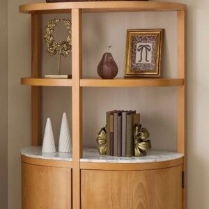 Stylish gold bookends with ribbon design. Enhance your bookshelf decor.