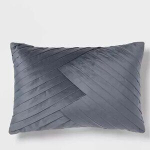 Threshold Luxe Oblong Velvet Pleated Decorative Pillow Slate Blue 14" x 20" NWT