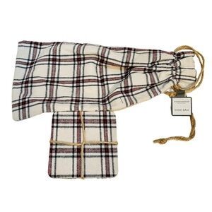 Threshold Plaid Holiday Christmas Fabric Drawstring Wine Bag and four Coasters