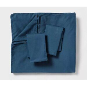 Threshold Queen Size Indigo Blue Cotton Sateen Duvet Cover & Shams 3 Piece Set