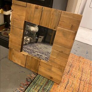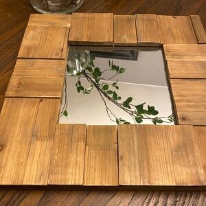 Threshold™ square reclaimed wood accent mirror. Measures 16" x 16".