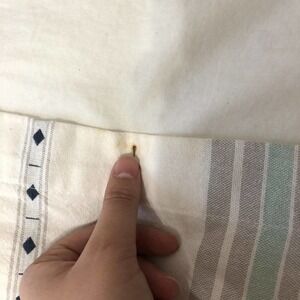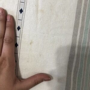 Threshold Shower Curtain Fabric White Gray Blue / Green Stripe Diamond Fringe