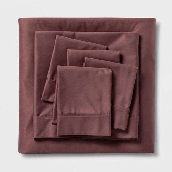 Threshold Signature - Full 6pc 800 Thread Count Solid Sheet Set Mauve - Mauve