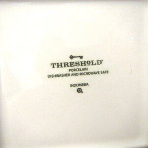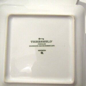 Threshold Square Porcelain 6 1/4 inch Appetizer Dessert Plate 6 pack in good used condition. Some of them show light utensil wear, that can be polished out with Bar Keeper's friend or other scrubs.