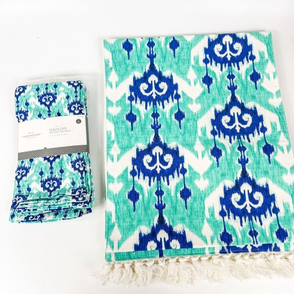 Threshold Teal Blue Teal Green Ikat Table Runner & Napkins Set