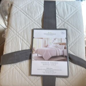 Provide the perfect finishing touch for your bed with this Vintage Washed Ruffle Quilt from Threshold™. This decorative quilt Features raw edge ruffle trim around the edges for relaxed, textural look along the edges to bring textural flair to your bedroom ensemble. Showcasing a lightweight design with cotton backing, this solid-colored quilt brings a layer of cozy and breathable comfort to your bed and easily blends with any decor.