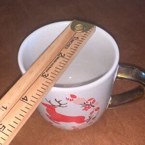 Threshold White Stoneware Mug With Red Deer & Gold Handle