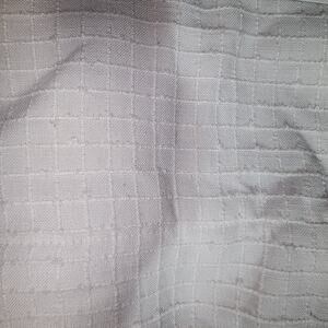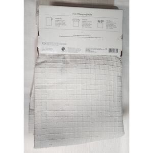 Threshold black out curtain set W 54'' x L 63'' New ivory texture plaid. Hanging style rod rocket, back tap and clip ring. New in original packaging , packing has minor blemishes. The curtains embodied line are loose . I don't know if this is design or defect. Curtain is made of polyester 100%.