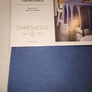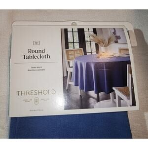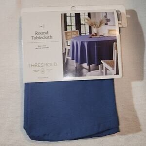 New in original packaging. Great condition and clean. Tablecloth 70'' diameter blue tablecloth. Material made 55% cotton and 45% polyester. Seats 4-6 people.