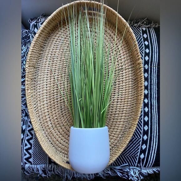 Threshold 20” elegant ceramic white planter featuring lifelike green faux grass. Perfect for adding a touch of nature to any room.
