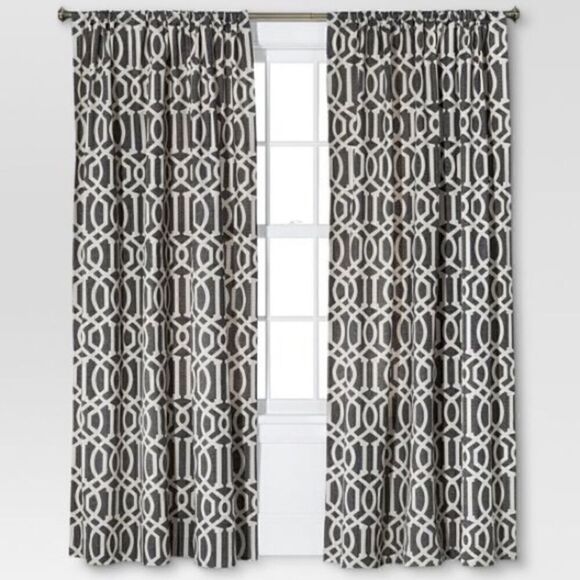 Threshold blue and white lattice curtain panels
