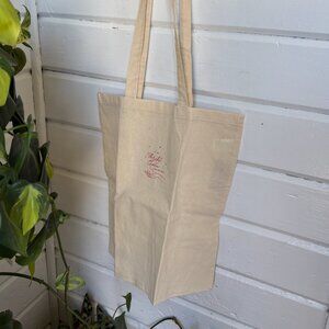 Like new condition Made from secondhand tote bag and screenprinting method Red ink. Tan tote.