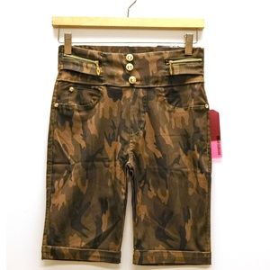 Long camo shorts by Thrill NWT. Bling details and zippers. Measurements shown in photos.
