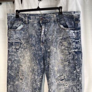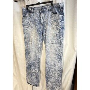Thrill Denim Jeans Pants Mens Blue Acid Wash Distressed as 42/33 measures 44/33