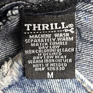 Thrill Jeans Denim Jacket Dress Medium Distressed Destroyed Button Front Frayed