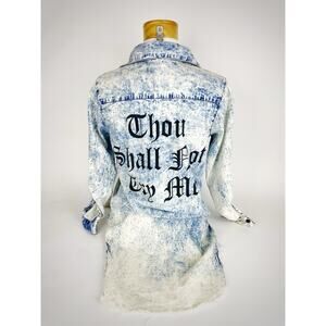 Thrill Jeans Distressed Bleached Denim Shirt Dress Thou Shall Not Try Me Size S
