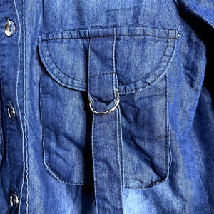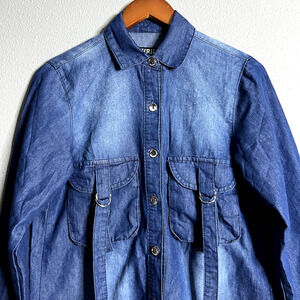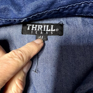 * Title: Thrill Jeans Womens Medium Denim Shirt Acid Wash Shacket Factory Distressed Boho Grunge