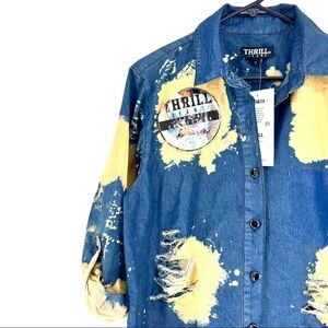 Thrill Jeans Novelty Wash Women's Distressed Hi Low Button Down Shirt