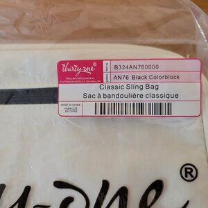 Thrity One Classic Sling Bag White with Black trim zipper closure