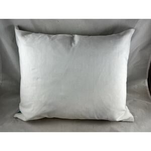 Preowned, it is bright, clean and odor free. Cover has a zipper closure. Interior pillow is down/feather filled.