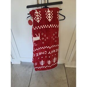 Thro Luxury Plush Fleece Throw Blanket Toss Red and White Christmas Pattern Deer