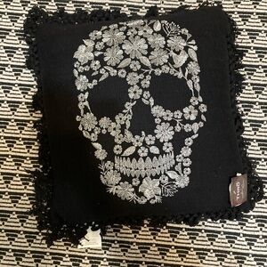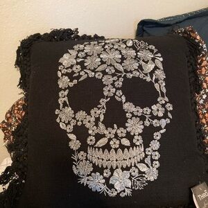 Gorgeous large Thro by Marlo Lorenz embroidered floral skull pillow with fringe. Soft and comfortable, new with tags