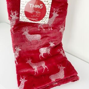 Thro Marlo Lorenz Reindeer Print Blanket Throw Red and Silver