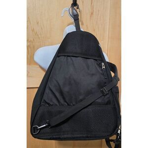 This black sling backpack tells a story of versatility and subtle style. Its design whispers practicality through its multiple compartments, while the sleek black finish resonates sophistication. Perfect for adventures or urban commutes, it offers both functionality and charm in every zippered pocket and mesh detail.