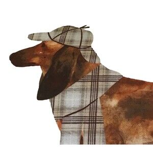 Dachshund Throw Pillow Plaid Sherlock Homes White Brown Tan Bedroom Dog.