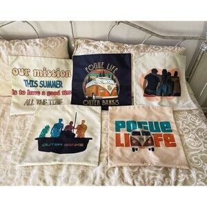 Perfect for fans of the Outer Banks NETFLIX show, this set of 5 throw pillow covers features a square shape and a size of 18 x 18 inches, perfect for adding a touch of style to any room. Made from a blend of linen and cotton, these multicolor pillow covers are machine washable for easy care. With a zip closure for easy maintenance, these "beachy" themed pillow covers are a stylish and comfortable addition to any home decor.