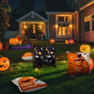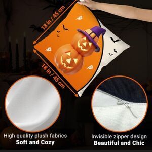 Throw Pillow Covers 18x18 Set Of 4 Halloween, Ghost, Cat, Witch Hat