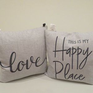Rodeo Home 100% Feather Filled Decorative Accent Throw Pillow Set of 2 for Bedroom, Couch, Sofa, Chair. Zipper pillow cover can be removed. Dark Gray embroidery contrasts against light gray fabric. “Love” and “This Is My Happy Place”. The 2 phrases that describes a home. Soft, comfy, decorative and functional. Bring joy and comfort to your home sweet home.