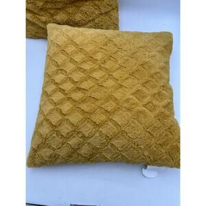 Bring warmth and cozy style to your home with this set of 2 mustard yellow textured throw pillows. The soft polyester fiber filling and plush, patterned fabric add comfort and charm, making them perfect for a sofa, bed, or accent chair.