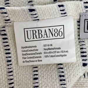 Throw Urban86 Textured Striped Tassel Hygge Style in White and Navy