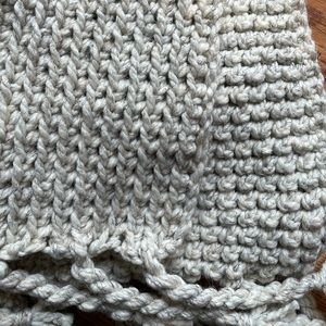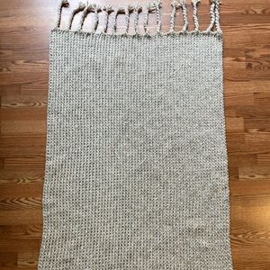 Handmade throw blanket make with lion brand wool ease yarn in wheat. 86% acrylic, 10% wool, 4% rayon. Size is 31” in width and 51” in length not including the tassels. Brand new and made by me.