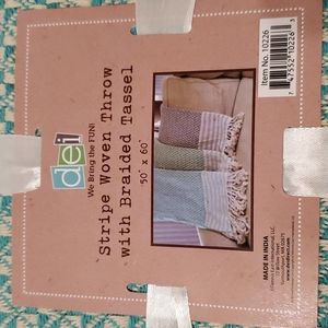Stripe woven throw with braided tassel