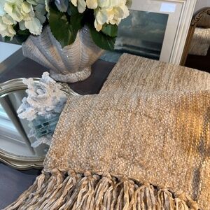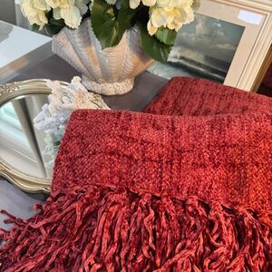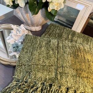 Solid chenille throw blankets and striped cotton gauze and chenille throw blankets