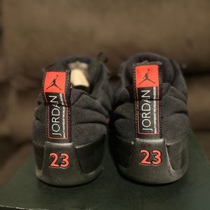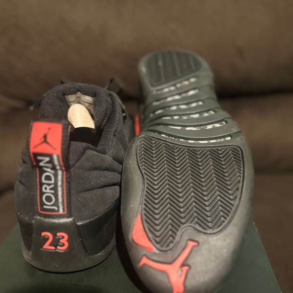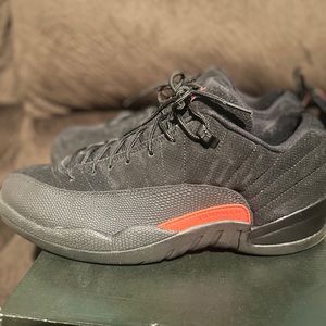 Red and Black low Jordan 12s in size 12