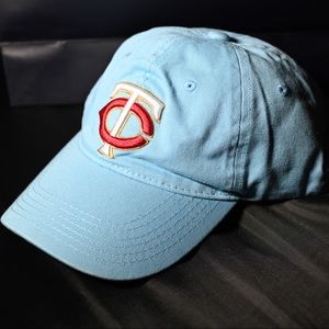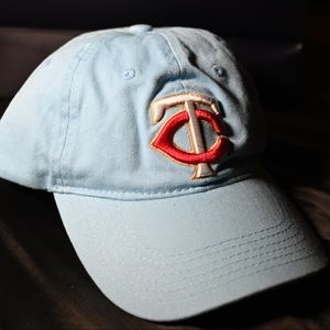 This baseball cap represents MLB’s Minnesota Twins franchise. This light blue cap that prominently features the Twins logo is a 2019 iteration of Dairy Queen’s sponsored Twins cap. This hat features a snap-adjustable strap. This item is in excellent condition and a great find for baseball fans or anyone who loves a baseball cap with a unique color.