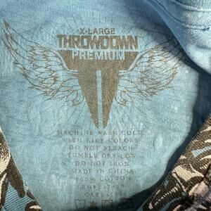 Throwdown Premium Shirt Mens XL Blue Black Affliction Cyber Gothic Angel Wings