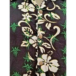 Thums Up Green Floral Men's Hawaiian Shirt XL Button Front