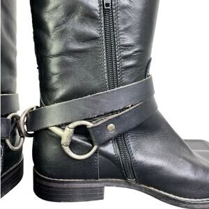 Thunder Italy Boots Womens 36 Black Leather Riding Style MC Buckle Zip Ankle
